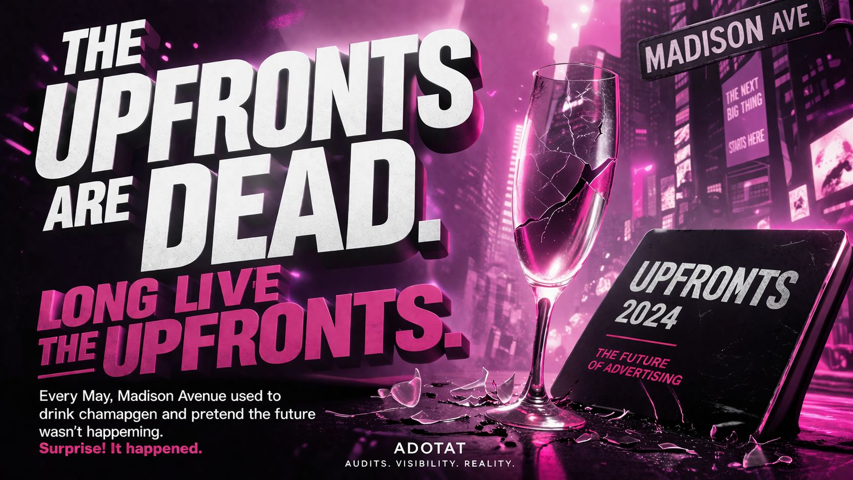 For decades, the TV upfront was the most gloriously anachronistic ritual in American business. Networks trotted out their fall schedules like debutantes at a ball. Advertisers clapped politely. Checks were written. Everybody went to a very nice dinner. It was, essentially, a very expensive way to buy something you could have bought in October, from the same people, at roughly the same price, while pretending this was somehow necessary.
